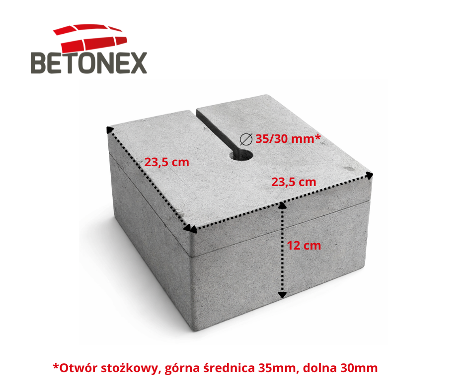 Fundament słupka  23,5 × 23,5 × 12 cm